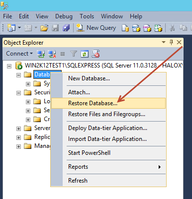 - Click the 'OK' button to restore, then right-click on 'Databases' again and click 'Refresh' so your restored database shows